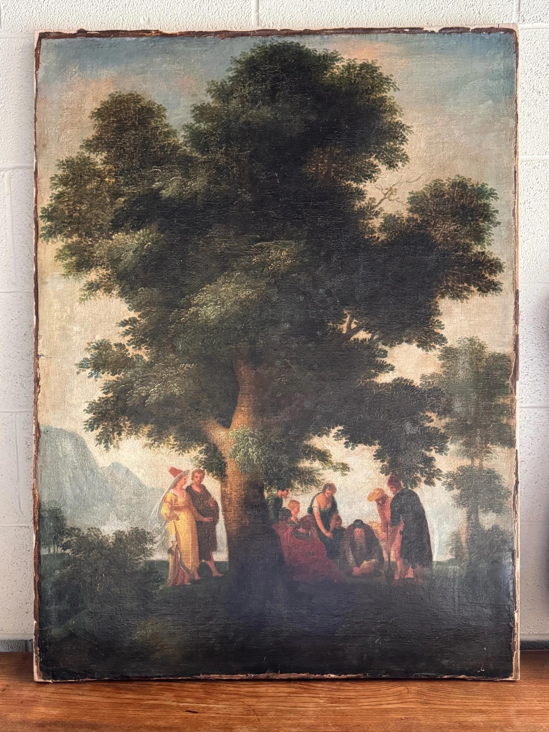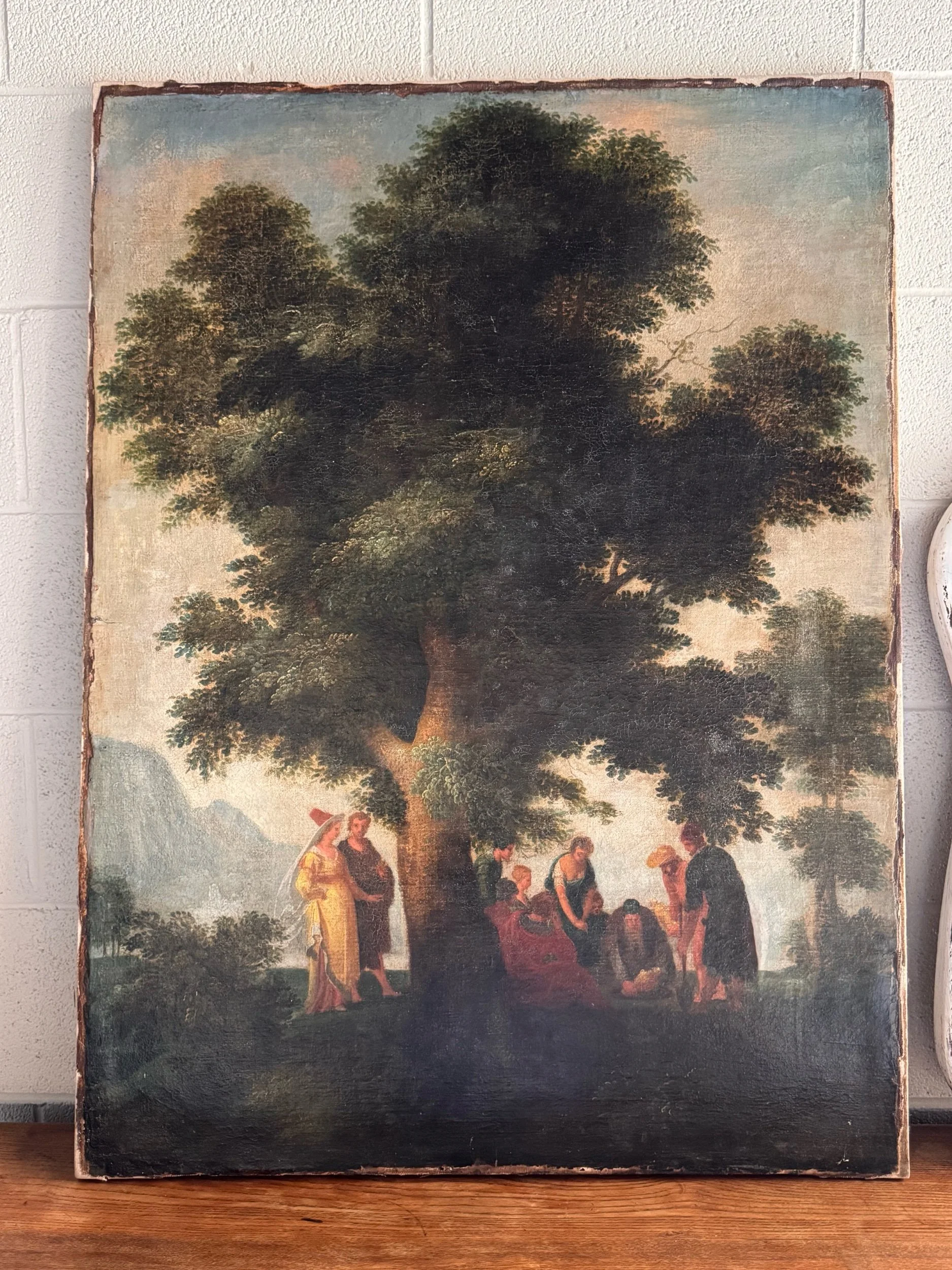 Art: Antique Oil on Canvas, A Burial Under a Tree | Circa 1780