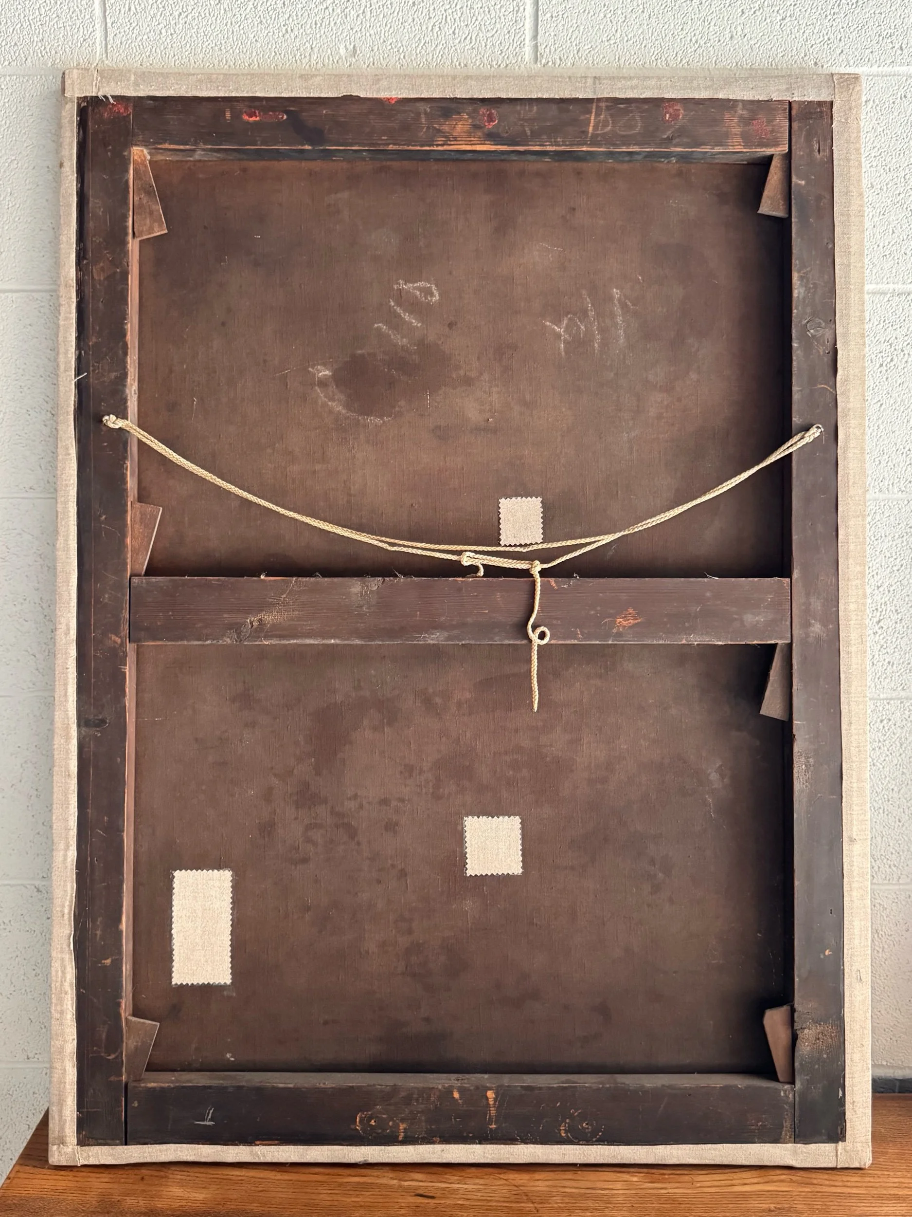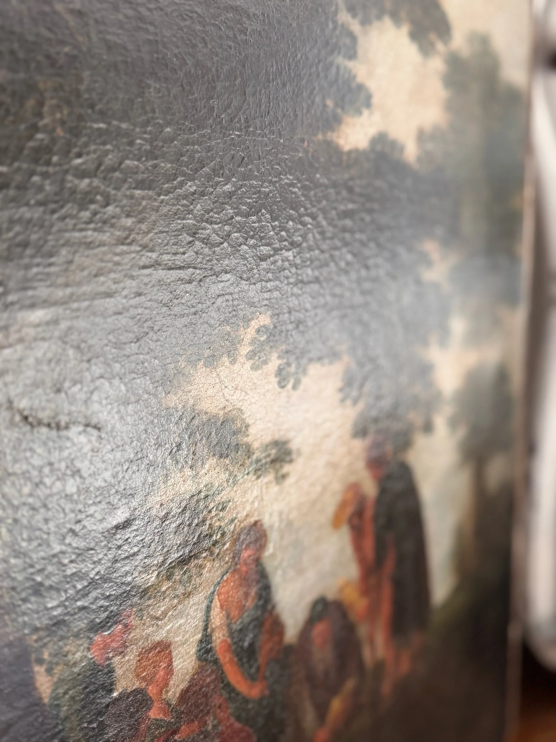 Unframed and retaining its original surface, the piece shows a rich patina with craquelure and edge wear consistent with its age. Its scale and survival make it a striking decorative work with genuine period presence.
