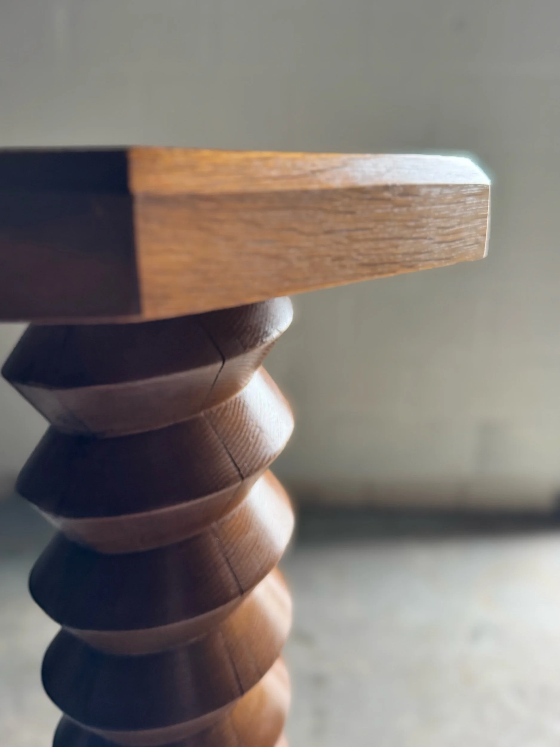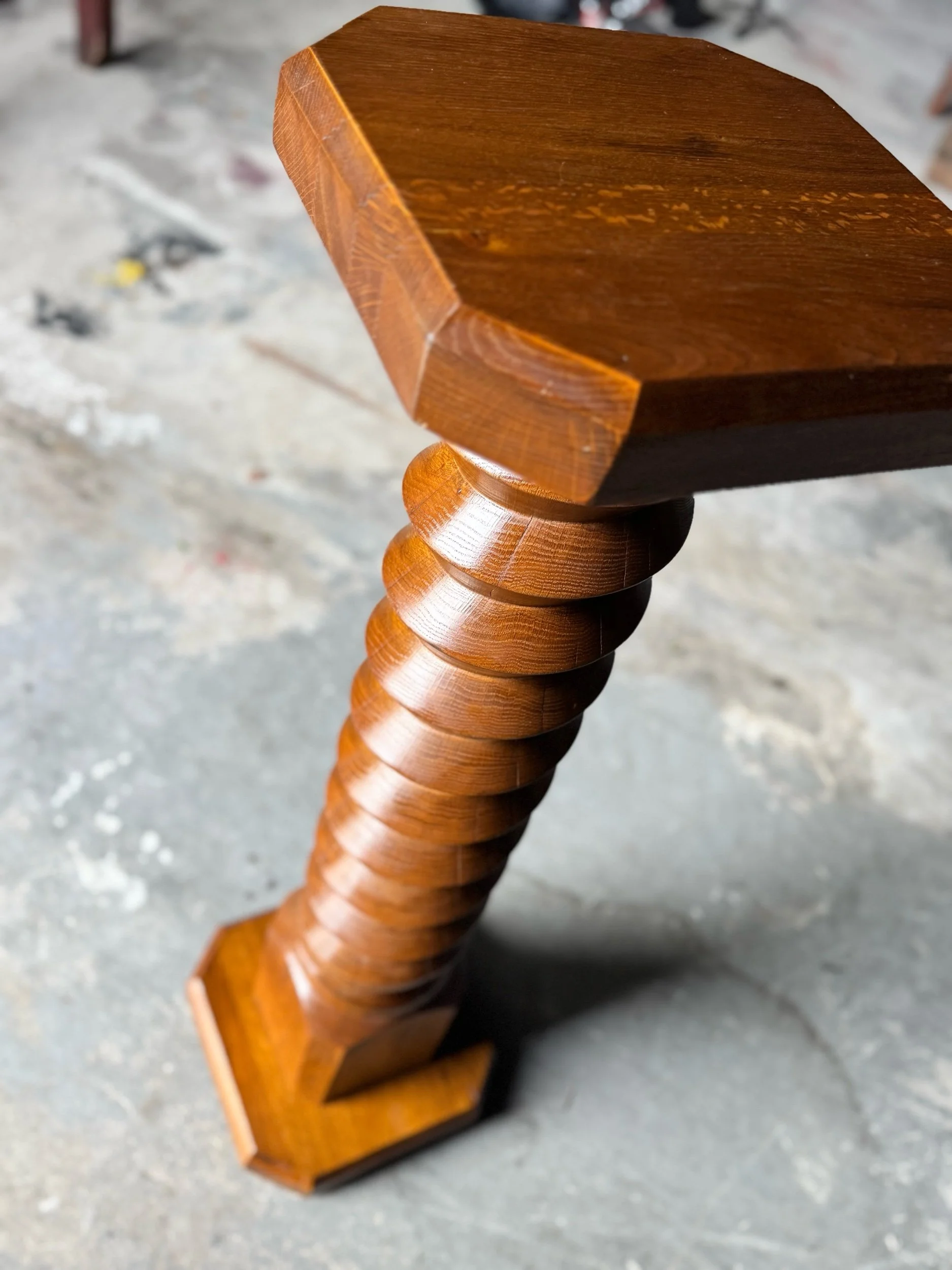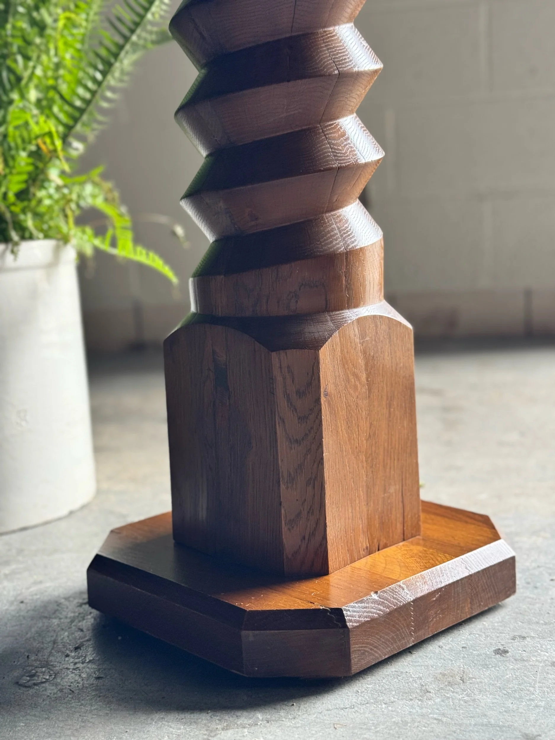 A beautifully sculptural circa 1900 French wine press screw, reimagined as a striking plant stand. Originally part of a traditional grape press, this hand-carved wooden screw would have been turned to gradually apply pressure, extracting juice from crushed grapes in the time-honored process of winemaking. Its rhythmic, spiral form is both functional and visually captivating: an authentic piece of French agricultural history brought into a modern setting.