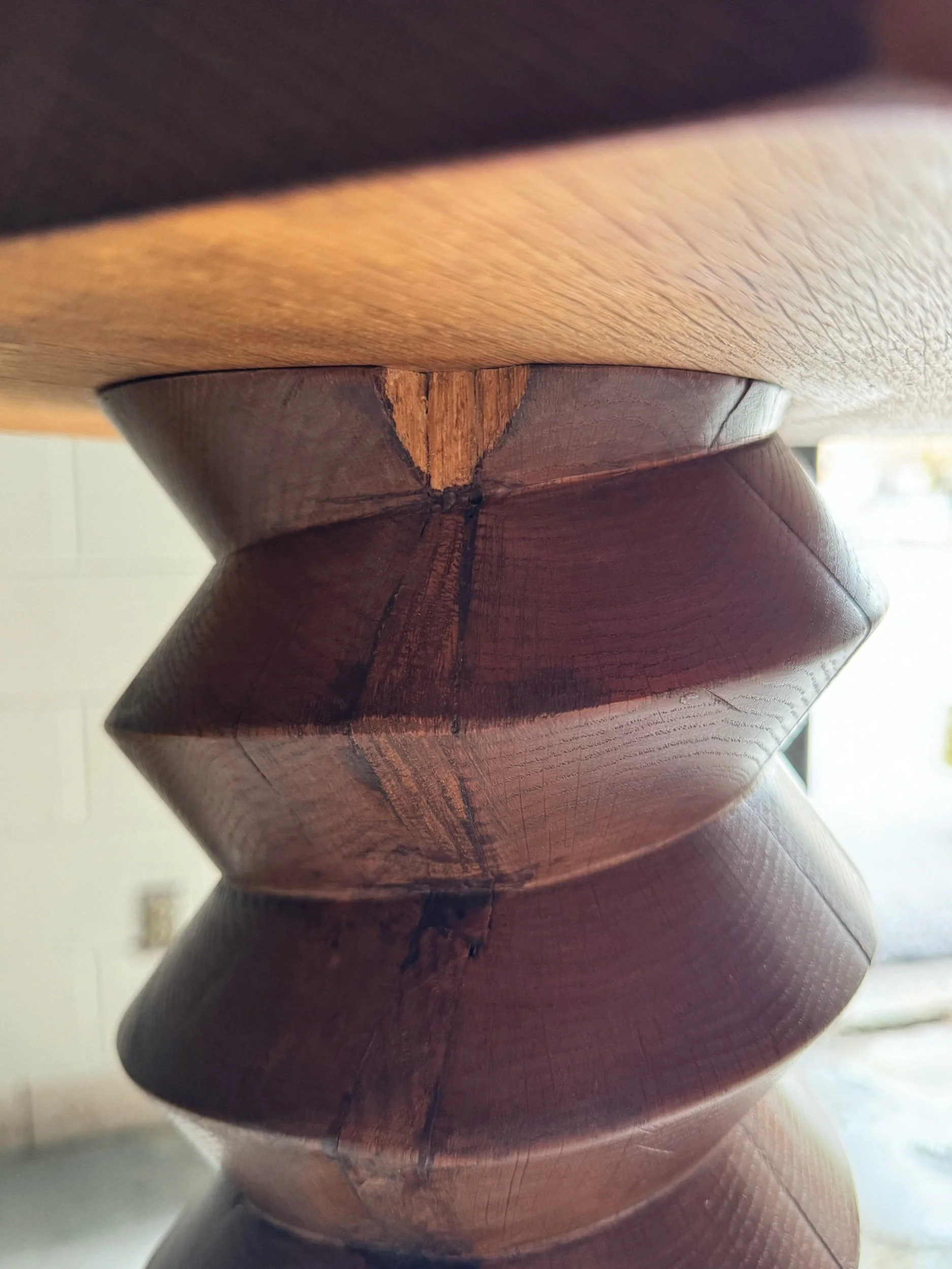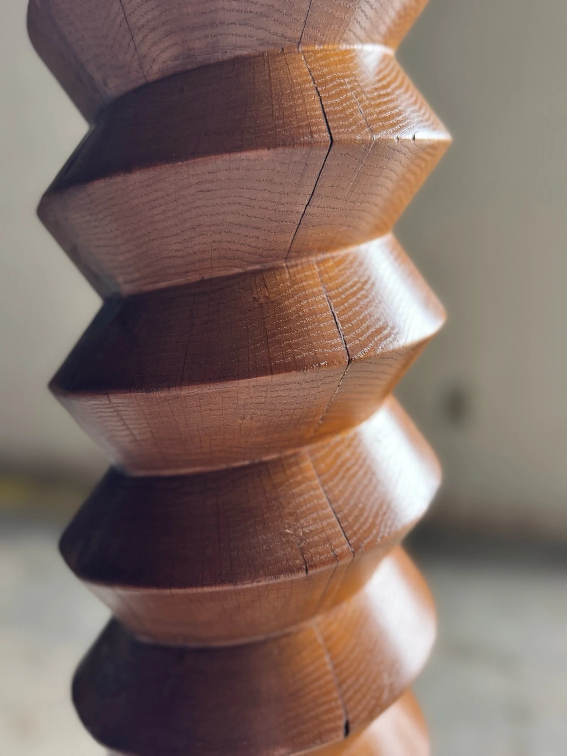 Good overall condition consistent with age and use. Minor surface wear including light scratches and small nicks throughout. Age-related hairline cracks and natural wood movement are visible along the screw, along with subtle variations in tone. The piece remains solid and stable, with wear that enhances its character and authenticity.