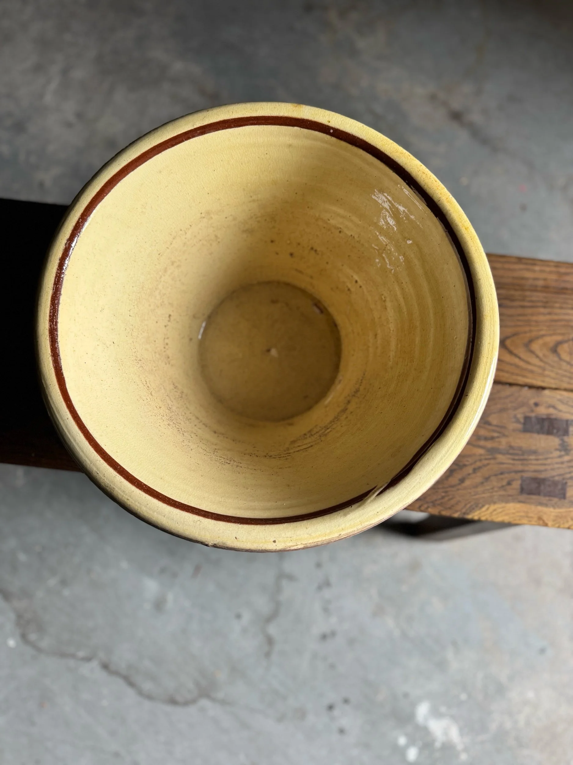 Antique French Pancheon Pale Yellow Glaze No. 2, Marbled Exterior | Circa 1890
