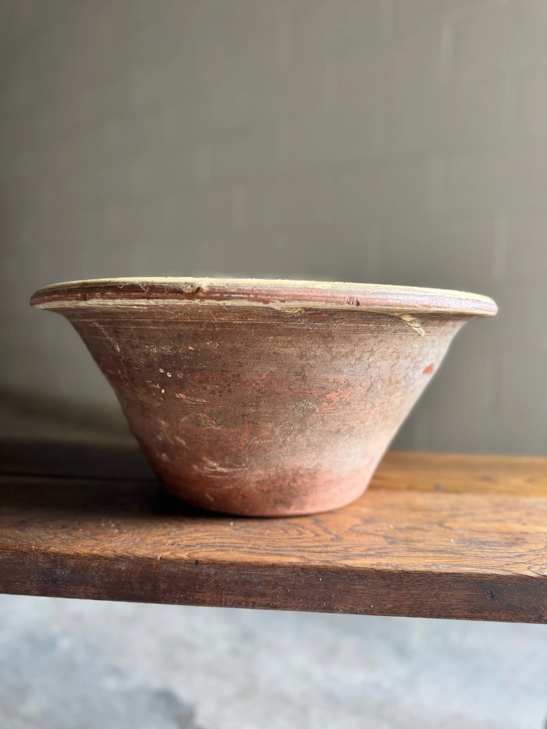 Pancheons date back centuries and were staples of farmhouse life across France. Their durable earthenware construction and generous scale made them indispensable for feeding families and working kitchens. Today, they’re highly sought after for that same honest utility and the rich patina earned through decades of use. Each example carries a sense of history that can’t be replicated, making them as compelling styled on a shelf or table as they are functional.