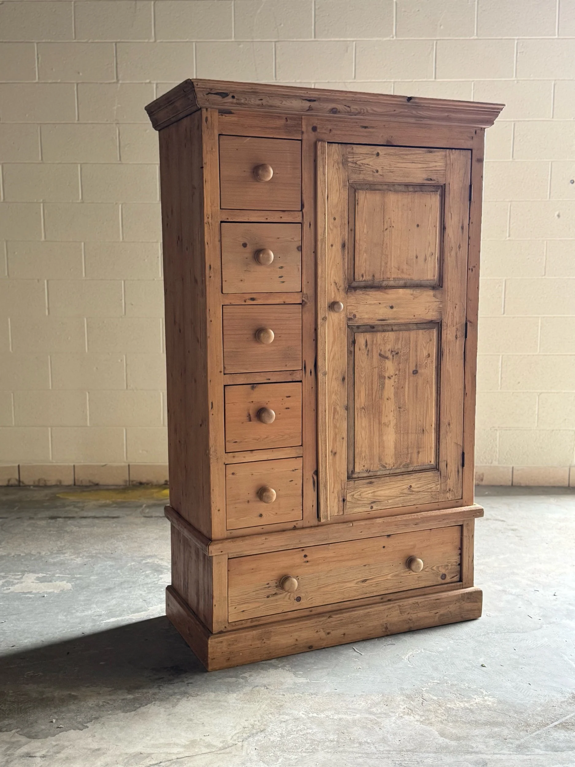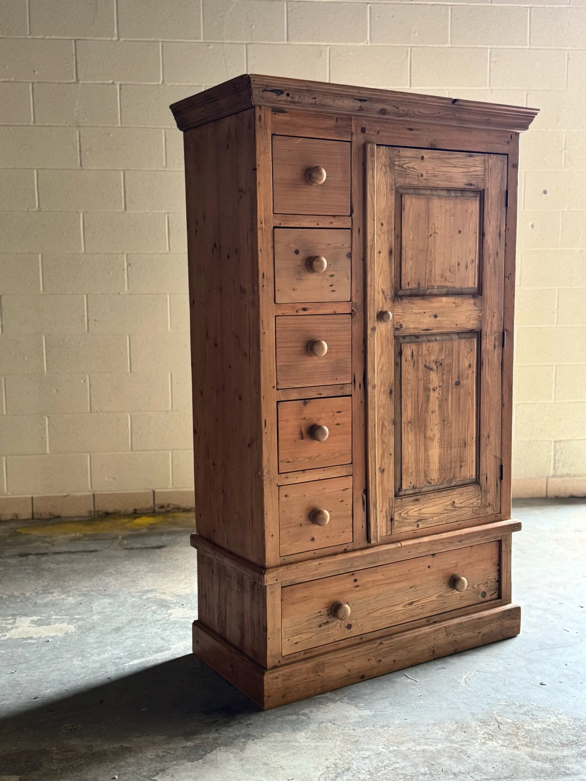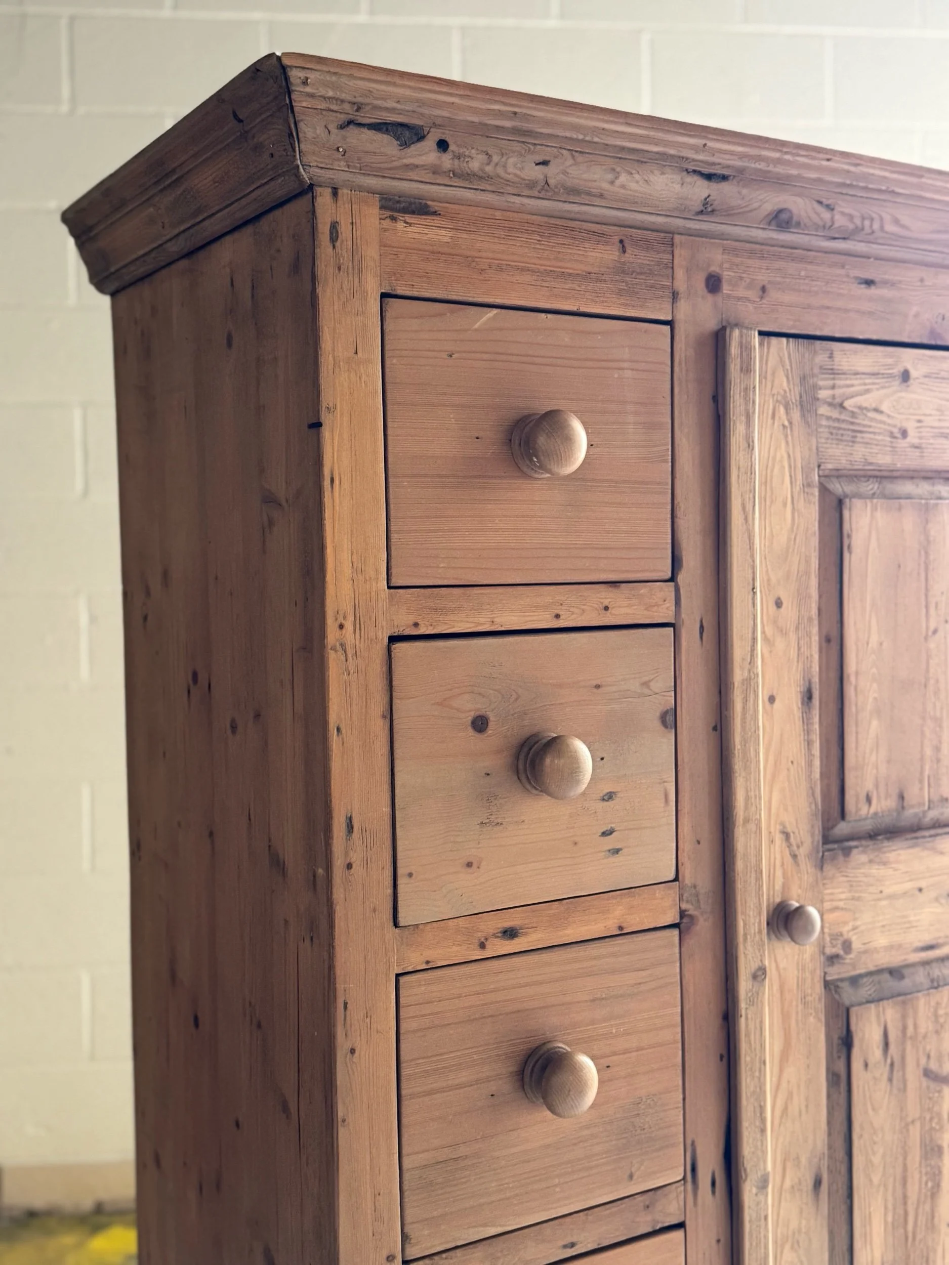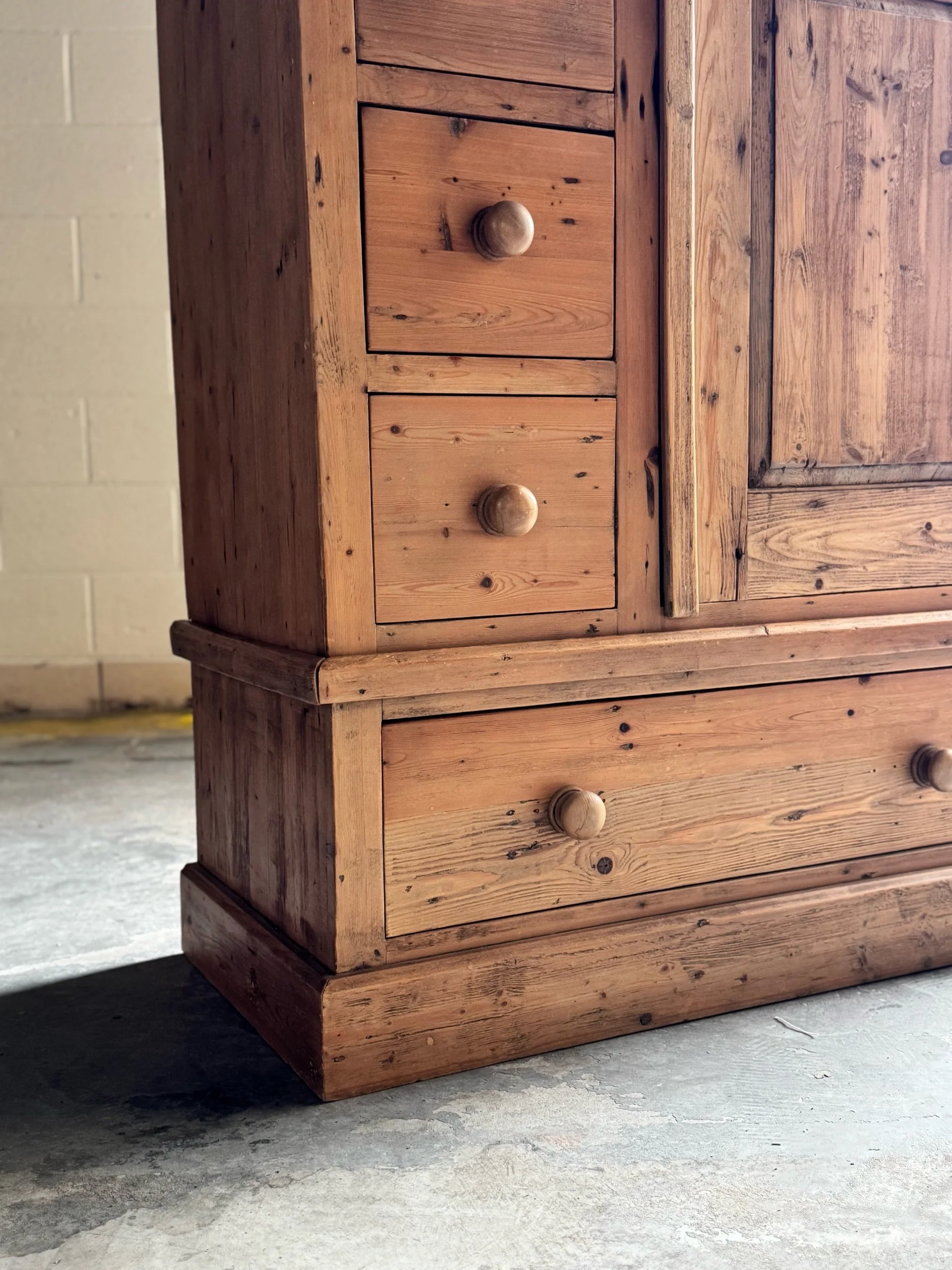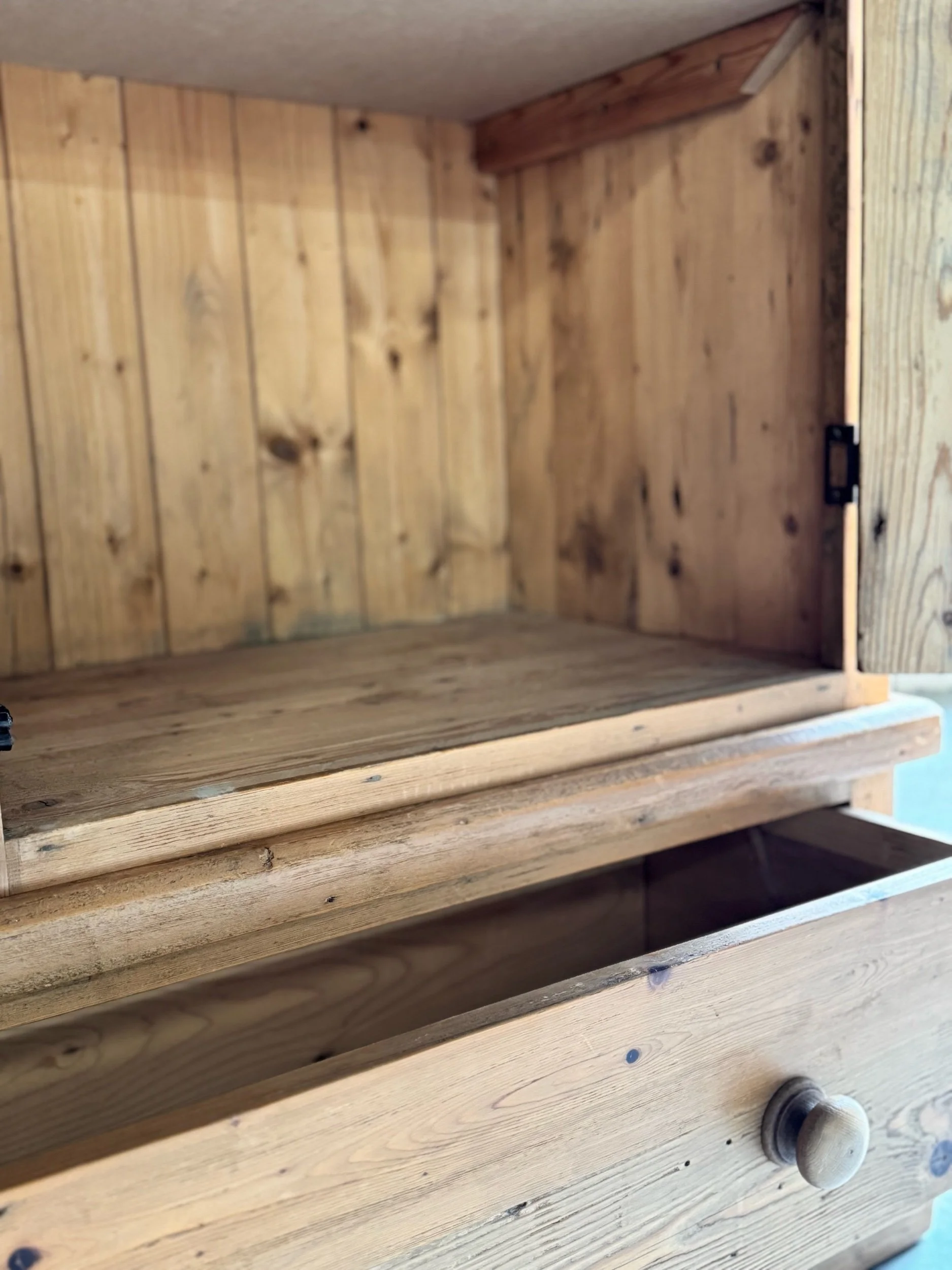 Good antique condition consistent with age and use. Surface wear, scuffs, and patina throughout, particularly to the working surfaces and edges, which add to its character. Interior backboards show expected age-related discoloration. Drawers run well; hardware appears original with a nicely aged finish. Structurally solid and ready for use.