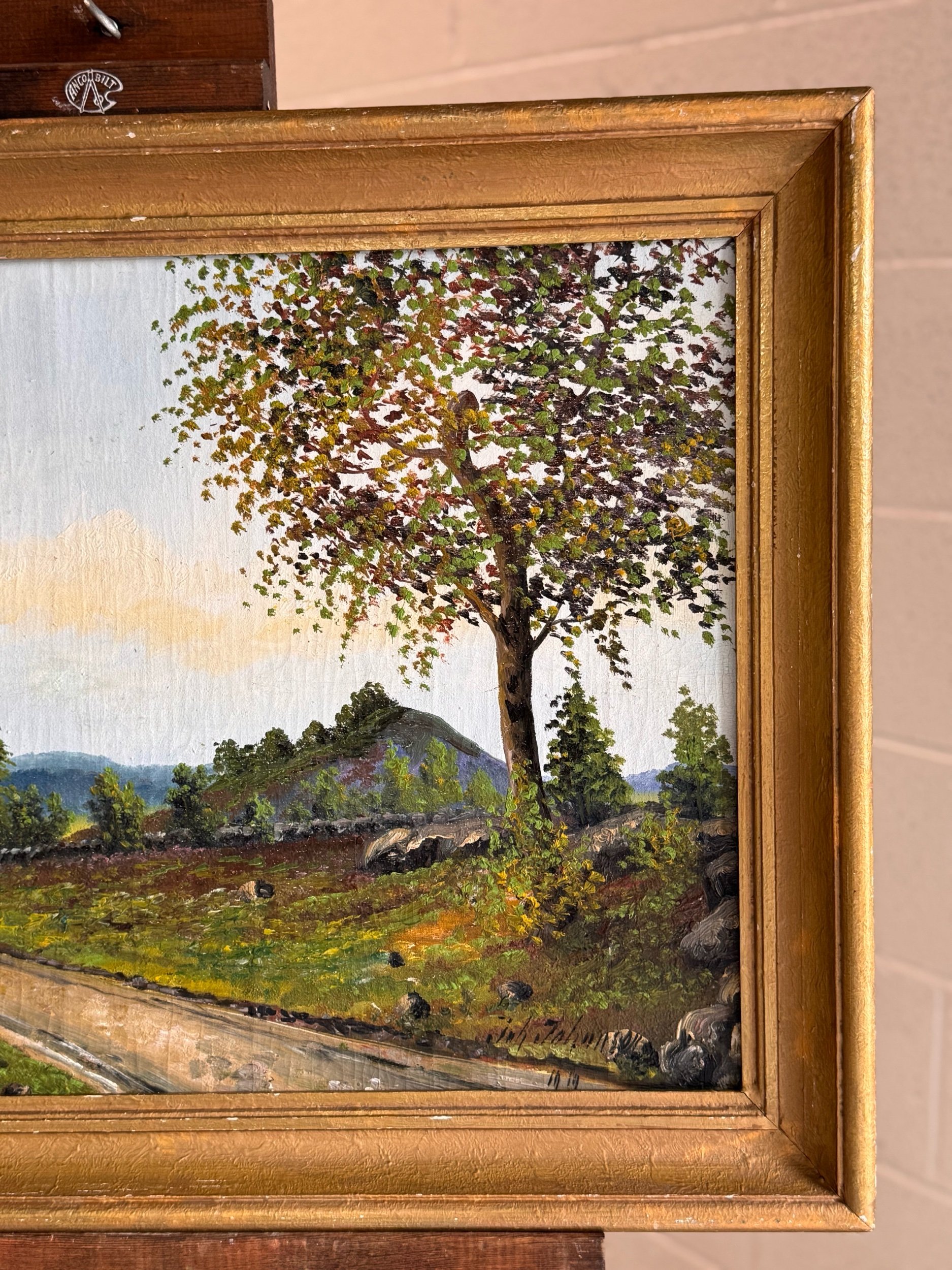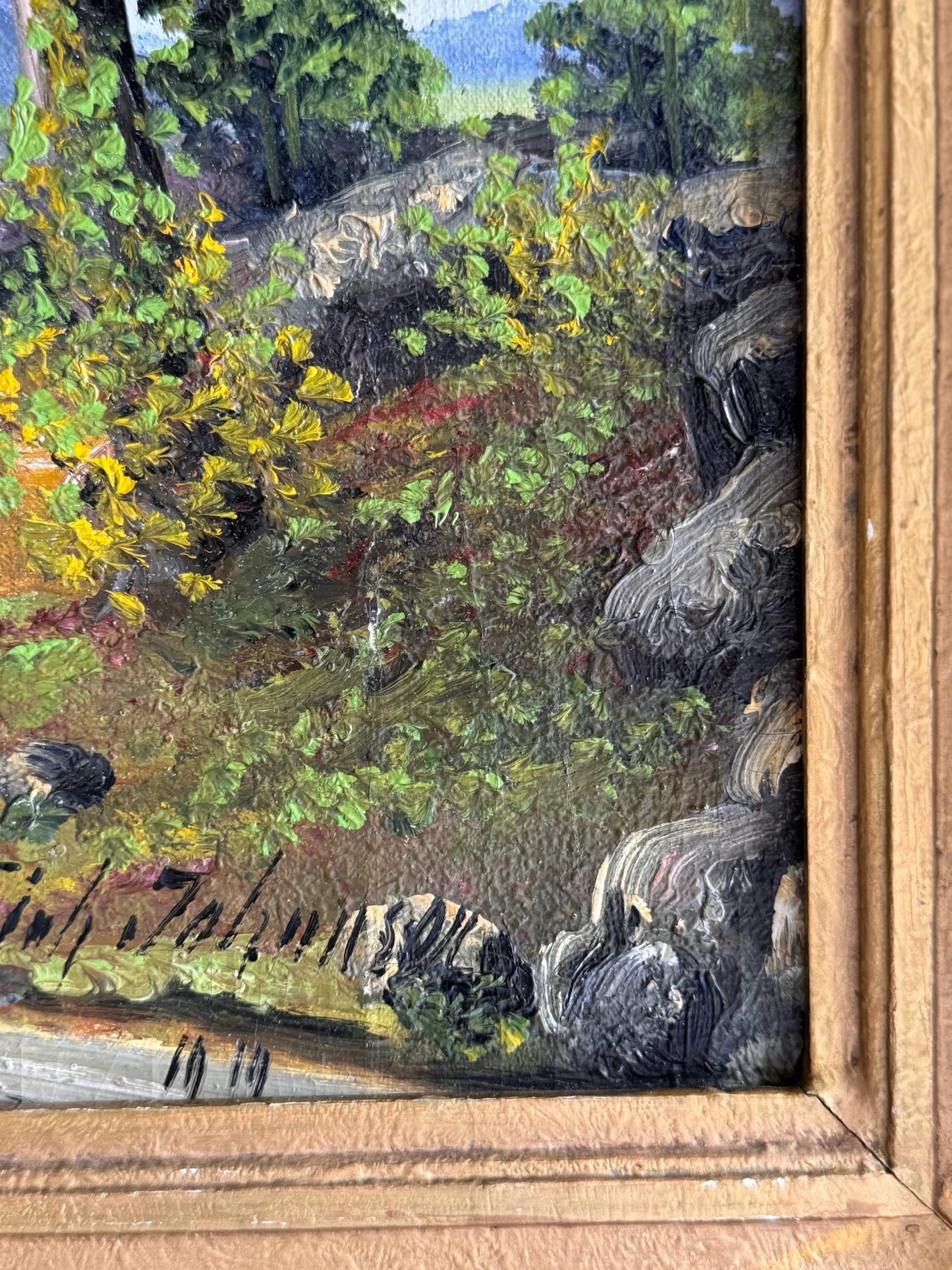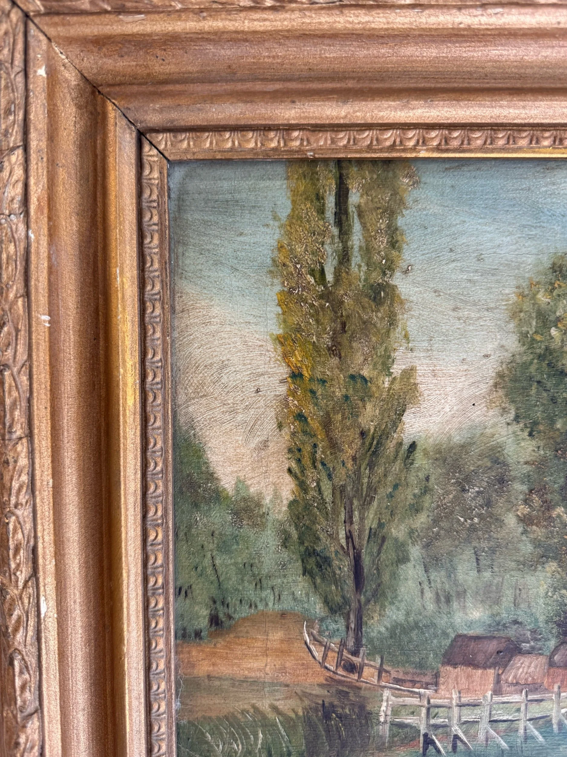 Antique Oil on Canvas, Decorative Landscape, Gilt Frame | Circa 1900
