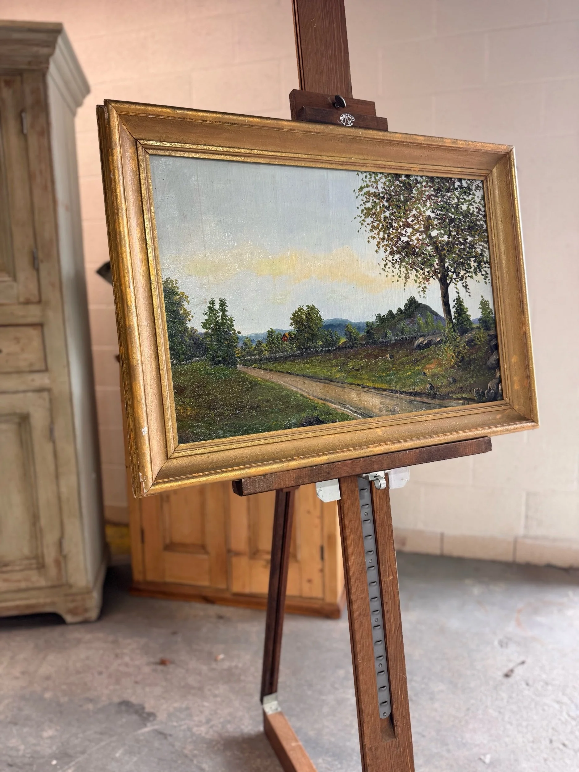 Presented in its original gilt frame, which adds warmth and texture and complements the earthy palette beautifully. An easy, versatile size for layering into a gallery wall or styling on a shelf.