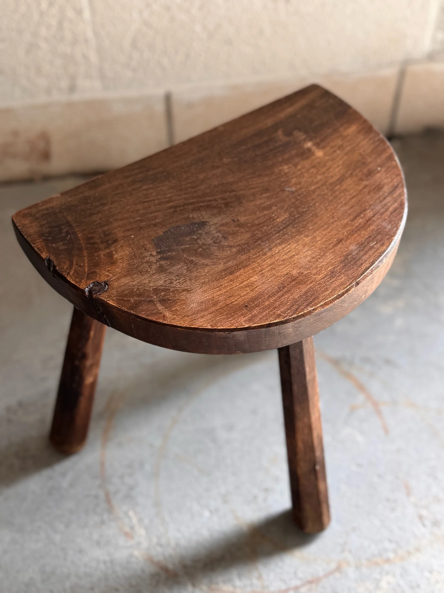 Antique French Stool, Three legged Demi Lune Top No. 2 | Circa 1900