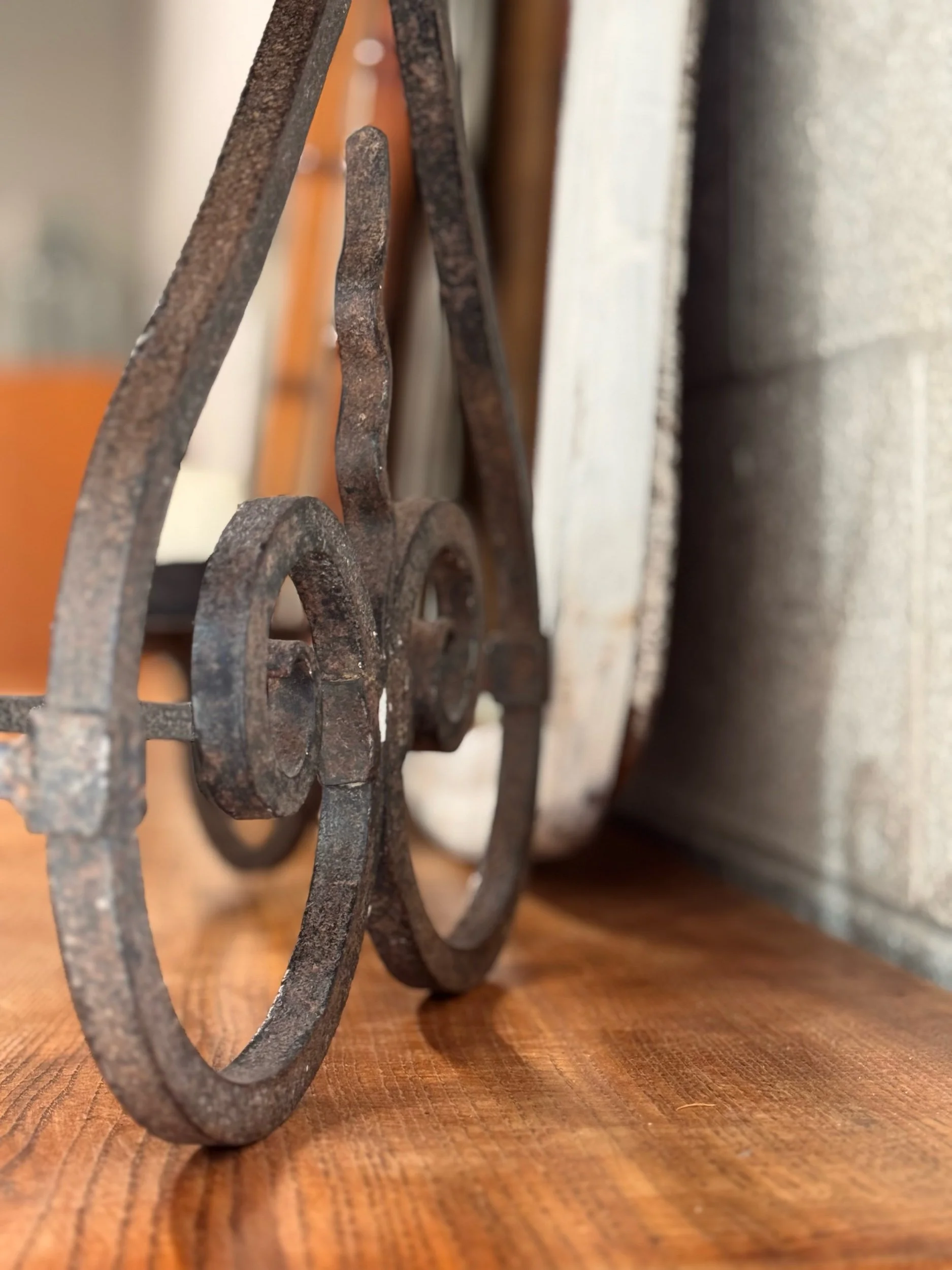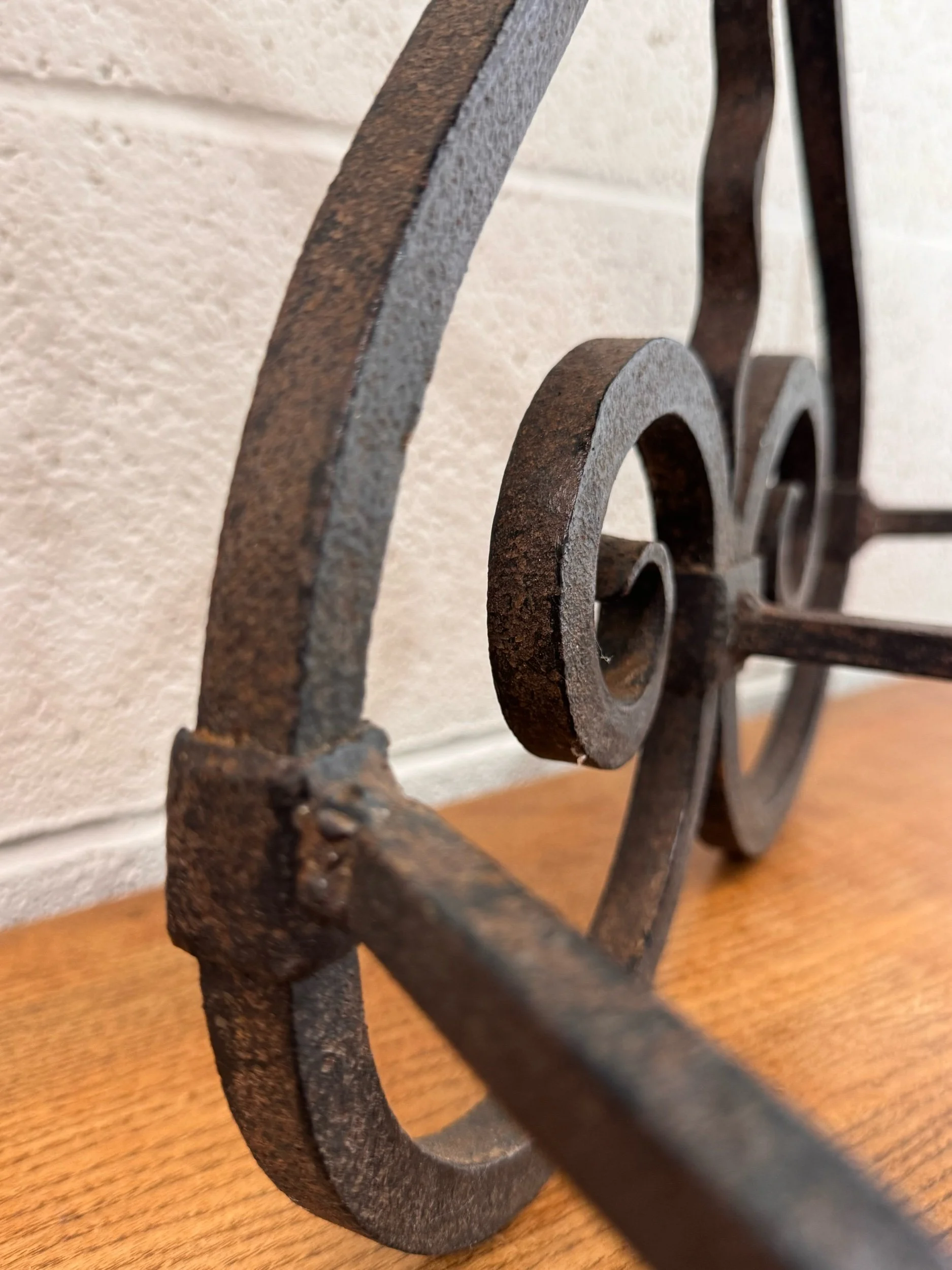 Good vintage condition with age-appropriate wear. Surface oxidation and patina throughout, consistent with hand-forged iron. Minor irregularities and variations from handmade construction. Structurally sound and ready for use.