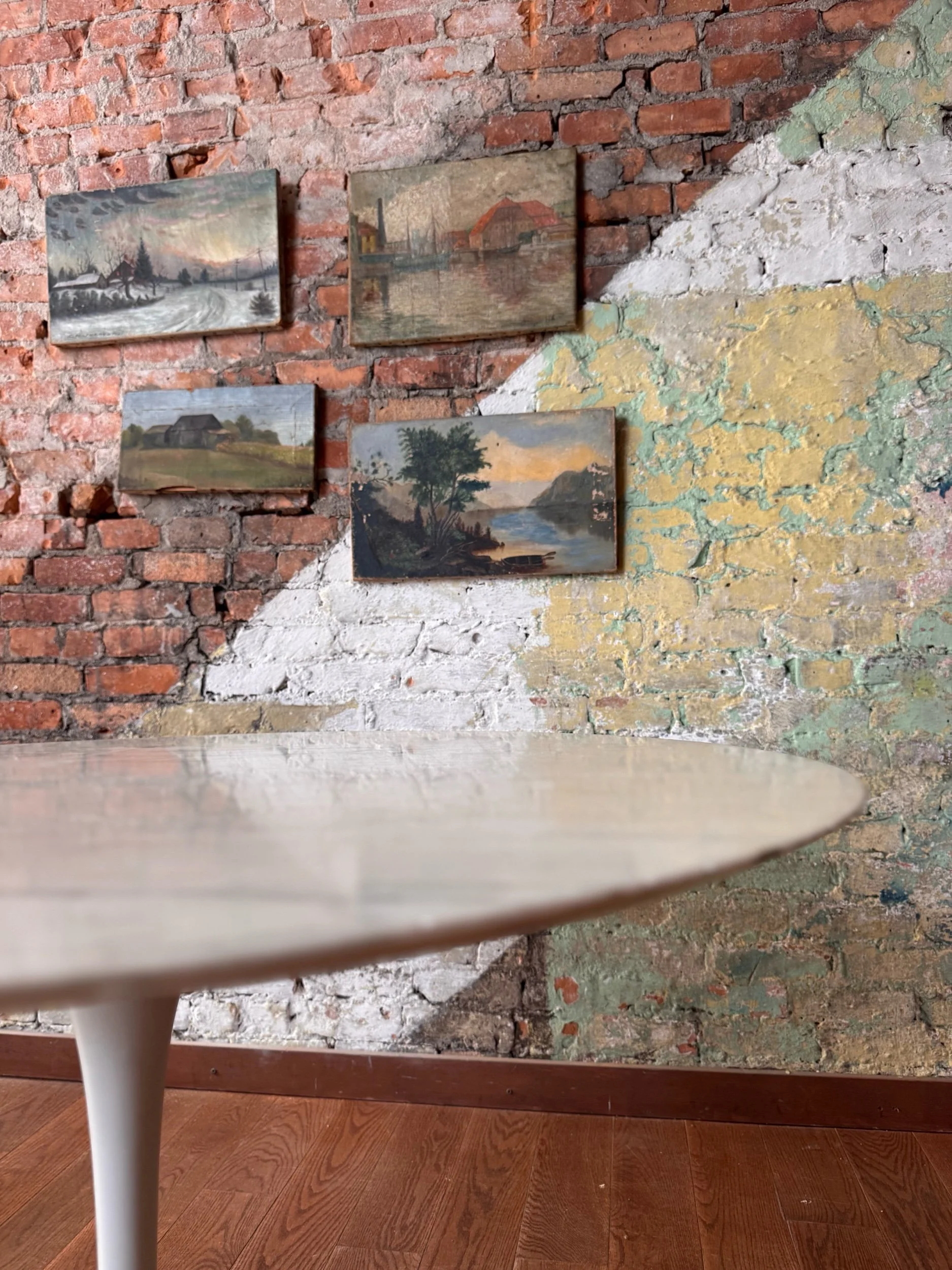 An iconic example of mid-century modern design, this early 1960s Tulip table was designed by Eero Saarinen for Knoll as part of his revolutionary Pedestal Collection. Saarinen famously set out to eliminate what he called the “slum of legs” beneath traditional tables and chairs, creating a sculptural single-pedestal base that remains one of the most recognizable forms in modern design.